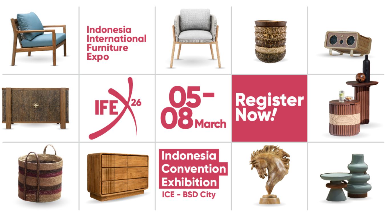 After a decade of showcasing Indonesia’s excellent furniture and craft products, the Indonesia International Furniture Expo (IFEX) will return once again with a new concept of exhibition experience. With a thematic concept for each furniture and craft category across every space, IFEX will create a vibrant atmosphere among key players in the industry. Located at a new venue — the Indonesia Convention Exhibition (ICE), BSD City — IFEX 2026 expands its scale with 11 halls equipped with modern and fascinating facilities for buyers to fully enjoy the exhibition experience. Playing a crucial role in directly connecting Indonesia’s local furniture and craft companies with buyers from around the world, IFEX continues to be the perfect platform for local manufacturers to showcase their wide range of products to the global market. Step into this journey — IFEX invites you to experience the ultimate furniture and craft exhibition in Southeast Asia in March 2026, where you can grow your business, supported by the best hospitality and well-organized execution.
